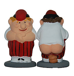 Jos pitäisi valita kakkakulttuurin todellinen luvattu maa, sen täytyisi olla Katalonian alue Koillis-Espanjassa. Tuolla alueella kakkaa arvostetaan tavalla, josta me muut kuolevaiset voimme vain unelmoida. Ensinnäkin Kataloniasta tulee caganer, johon voi törmätä myös Ranskassa, Portugalissa ja Italiassa rajatuilla alueilla. Caganer on hahmo, joka vääntää torttua jouluseimen takana. Kyllä, luit oikein. Josef, Maria, pikku-Jeesus, tietäjiä, aasi ja muita eläimiä – ja caganer. Mitä ihmettä? Kukaan ei oikeastaan tiedä. Caganerin alkuperää ei tunneta, mutta nähtävästi hahmo syntyi joskus 1600- ja 1700-lukujen vaihteen tienoilla. Kukaan ei oikeastaan edes tiedä, mitä caganer symboloi. Mahdollisesti caganerin tarkoituksena on ollut muistuttaa, että pyhiä tai eivät, kaikki meistä kakkaavat. Jossain vaiheessa caganereista tehtiin valtaapitävien näköisiä, joten ehkä tässä on ollut hyvä keino tehdä pilaa hallitsijoista. Nykyään tosin kaikista julkisuuden merkkihenkilöistä aina Paavo Pesusienestä Englannin kuningattareen ja kuuluisiin jalkapalloilijoihin asti tehdään caganer-patsaita, ja tämä lienee kunnianosoitus heille. Hauskinta on, että caganer on oikeasti tärkeä hahmo katalaaneille. Voisi luulla, että kakkaava hahmo olisi vähän nolo nykyaikana, mutta kun caganerin hahmo jätettiin pois Barcelonan jouluseimestä vuonna 2005, asiasta nousi valtava meteli. Syynä poisjättöön oli se, että kaupungin järjestyssäännöissä oli juuri tehty kaduille pissaaminen ja kakkiminen laittomaksi, joten caganeria pidettiin huonona esikuvana kaupunkilaisille. Jo heti seuraavana vuonna caganer teki paluun seimikuvaelmaan.