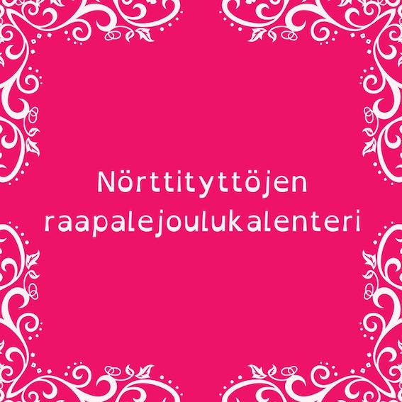 Ylihuomenna alkaa joulukuu ja avautuu ensimmäinen luukku Nörttityttöjen raapalejoulukalenterista. Raapale tarkoittaa tasan sata sanaa pitkää tekstiä. Kalenterin raapaleita on ollut mukana kirjoittamassa joukko suomalaisia kirjailijoita sekä Nörttityttöjen omia kirjoittajia. Uusi raapale julkaistaan joulukuun ajan joka aamu aattoon asti klo 9.00 aamulla.